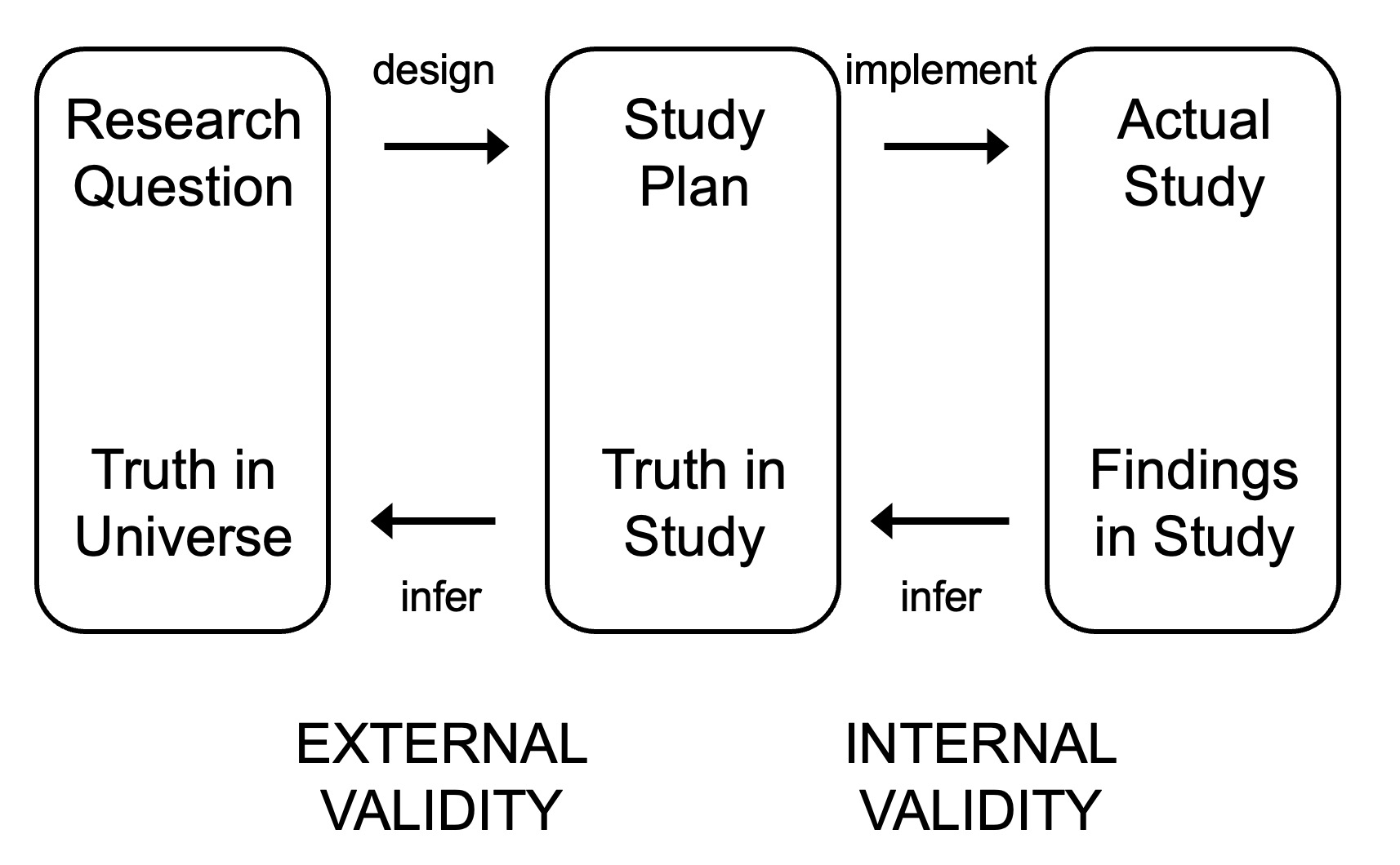 - Do measurements correspond to constructs of interest (are we studying what we intended)?