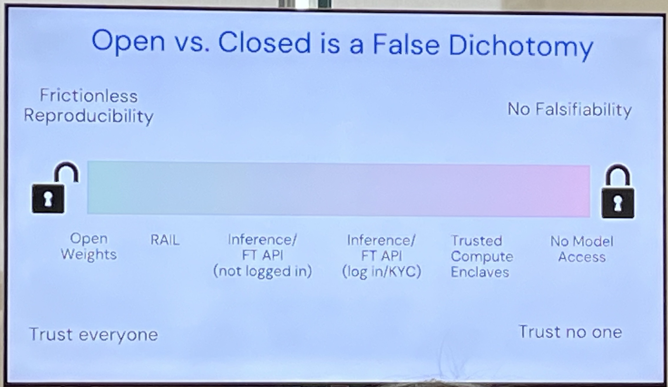 Open vs. Closed weights is a false dichotomy. There's a spectrum. E.g. trusted computing enclaves. No model access gives you no falsifiability.